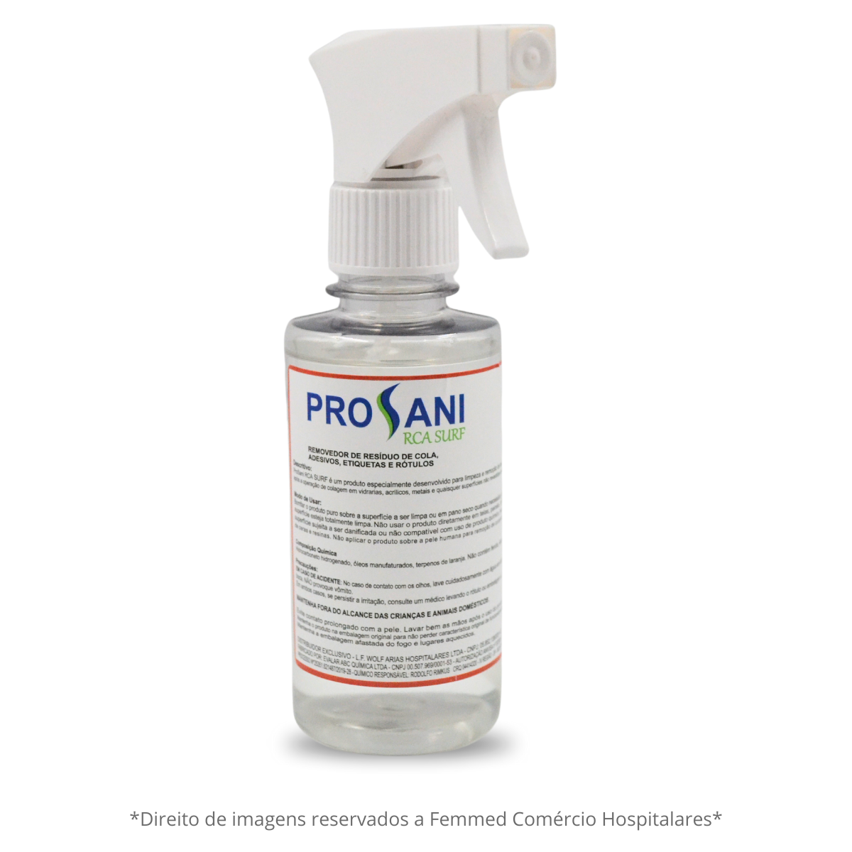Prosani RCA Surf – é um produto especialmente desenvolvido para limpeza e remoção de resíduos de colas de etiqueta e rótulos deixados após a operação de colagem de vidrarias, acrílicos, metais e quaisquer surperfícies não revestidas de ceras e resinas. É eficiente em remover chicletes de roupas e sapatos ou pisos